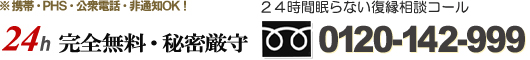 復縁の相談は24時間無料で受け付けております。秘密厳守を徹底しておりますのでお気軽にご相談ください。